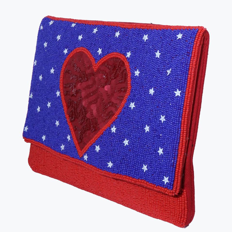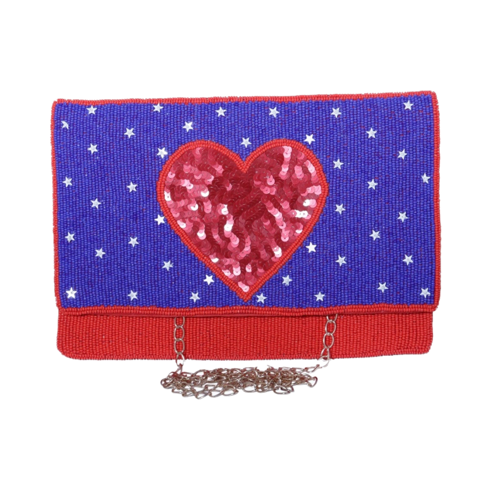 Exclusive Design Mini Handbag for Women Red Blue Heart Shaped Embroidery Nylon Lining Shoulder Purse Cover America Day Fashion