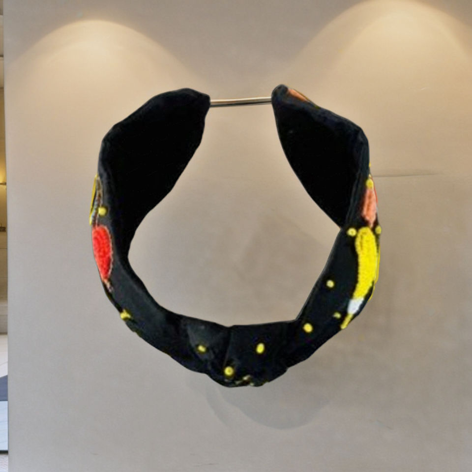 Handmade Beaded Hairbands for Teachers Exclusive Design with Black Base and Multi Color Embroidery for Bath Spa Makeup Headbands