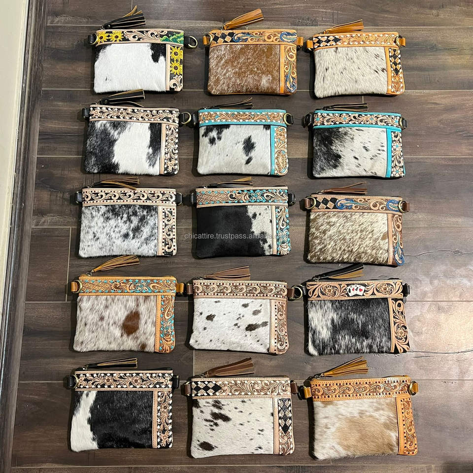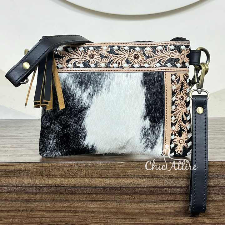 Fashionable Hand Tooled Cowhide Leather Crossbody Bag