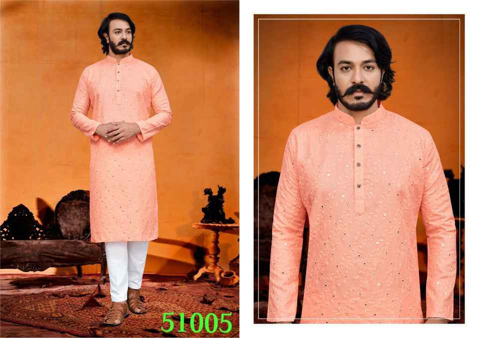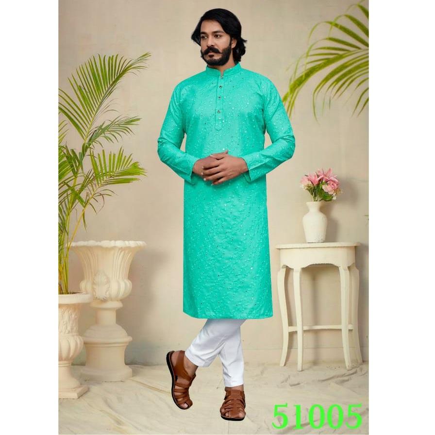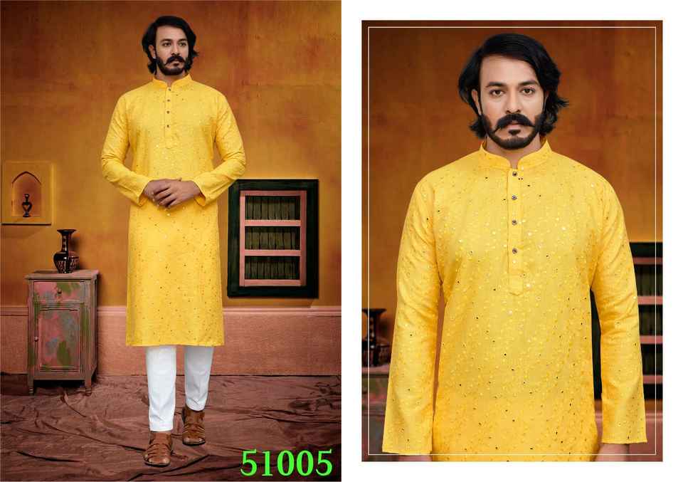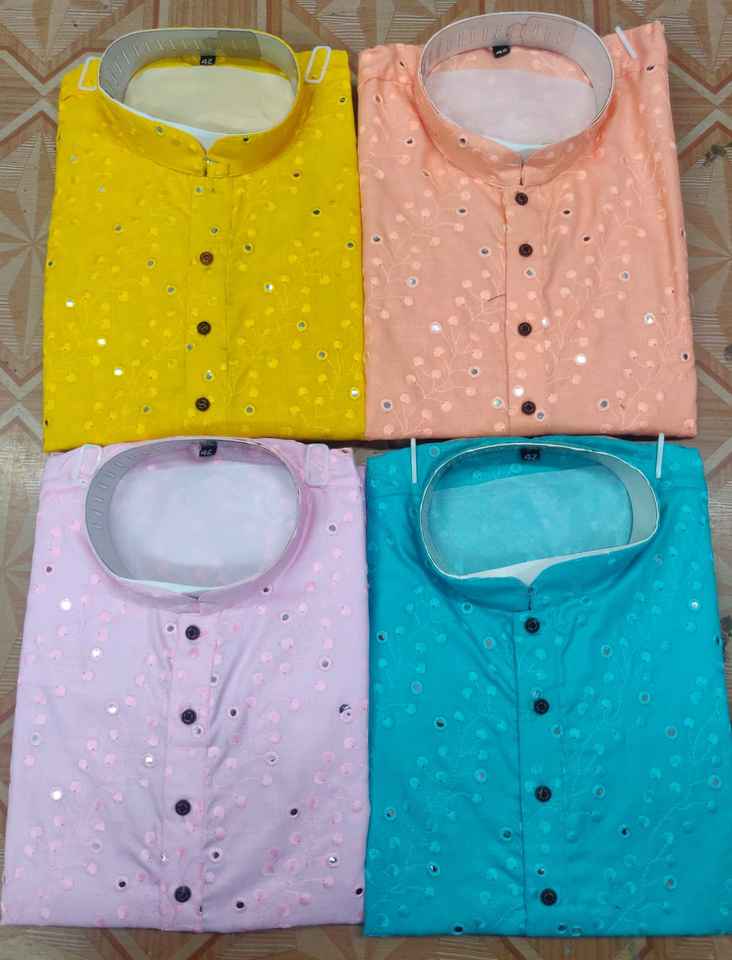 Exclusive Designer Wedding Festive Wear Pure Cotton Foil Embroidery Work Mens Kurta With Plain White Pajama at Cheap Rate USA