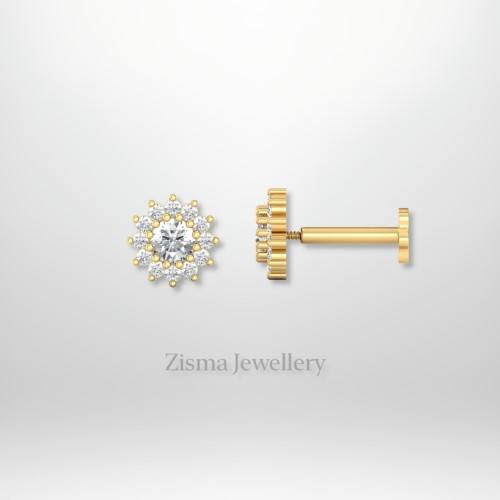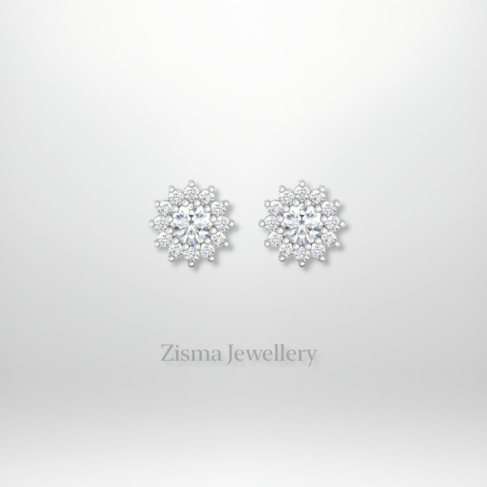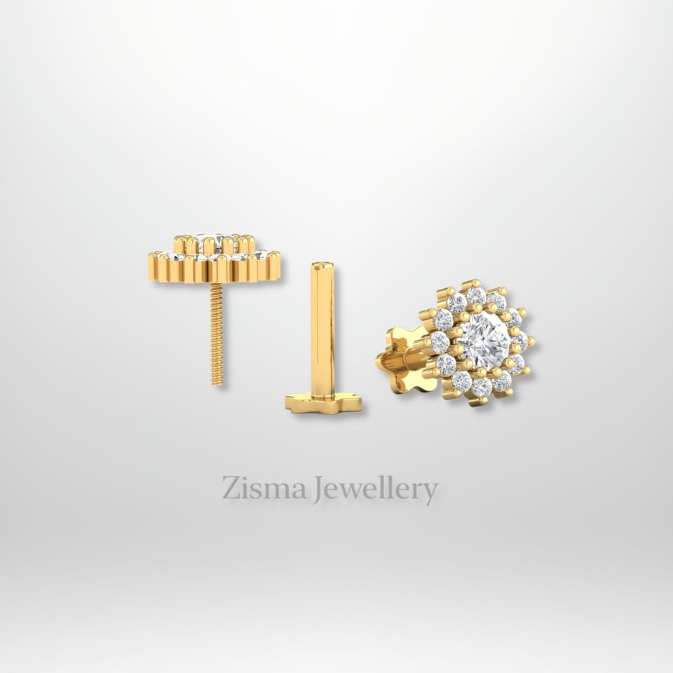 Exclusive Diamond Flower Stud Earrings 14K Solid Gold Natural Lab Grown Diamonds Flat Back Lobe Cartilage Helix Piercing Jewelry