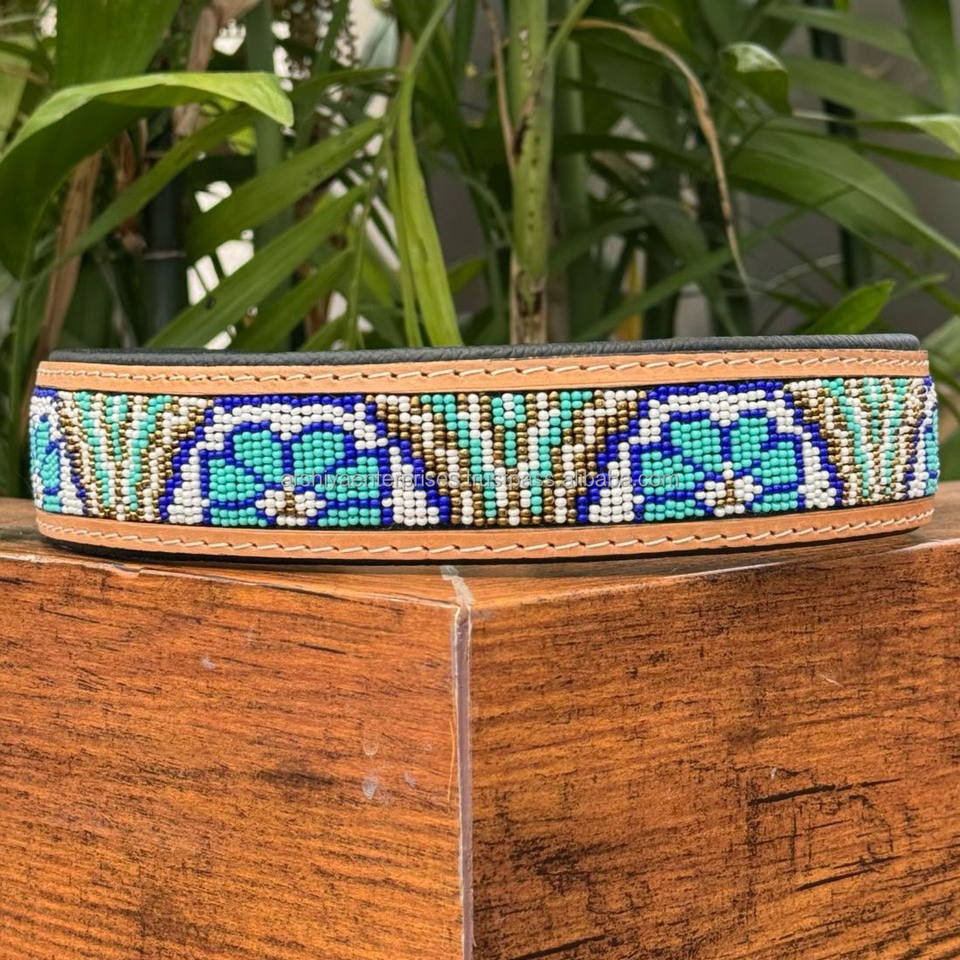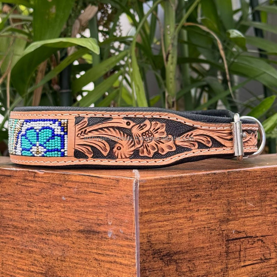 Product Name:Hand Tooled Leather Beaded Dog Collar