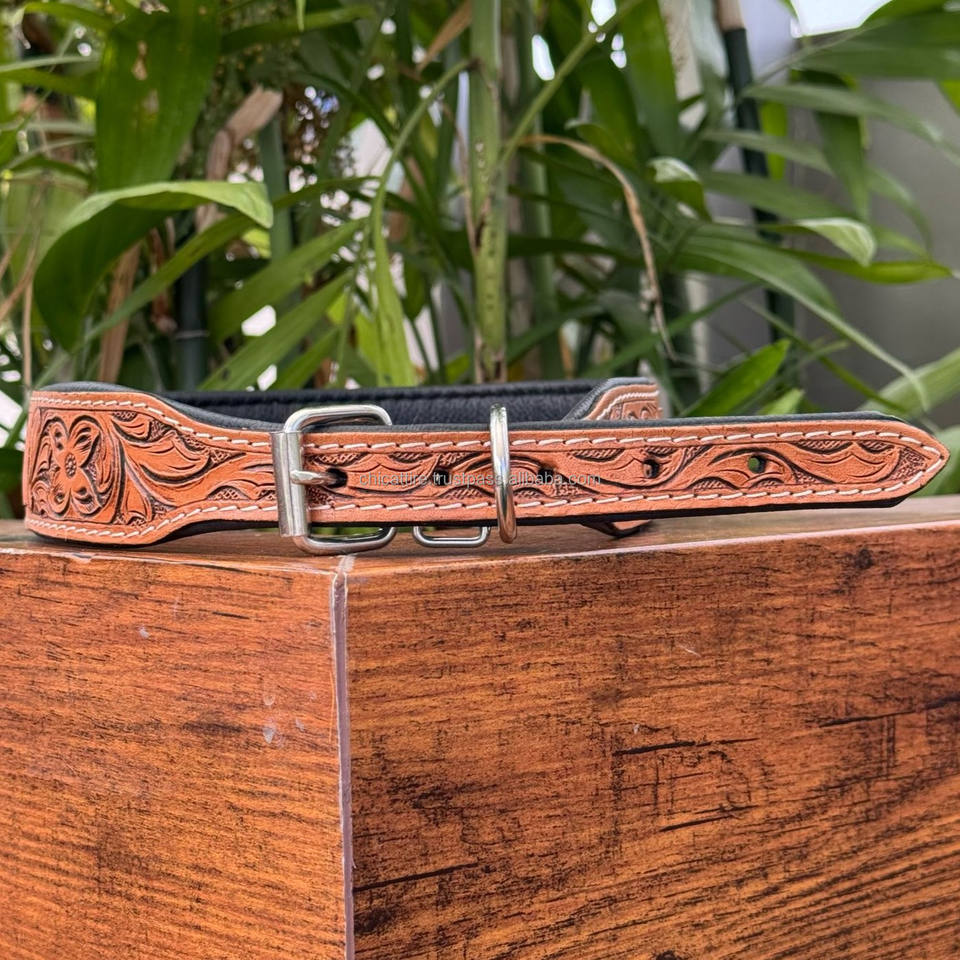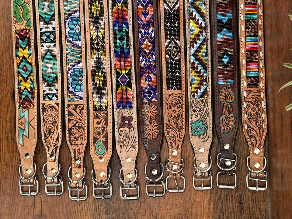 Product name:Hand Tooled Leather Beaded Padded Dog Collar