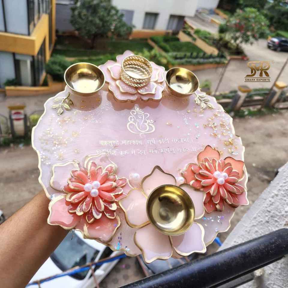 Exclusive Eco-Friendly Angel Model Epoxy Resin Puja Thali Designer Handmade Decorative Diwali Festival Spiritual Rituals Gifting