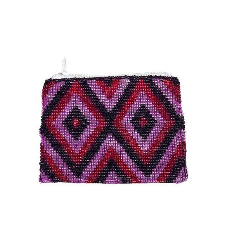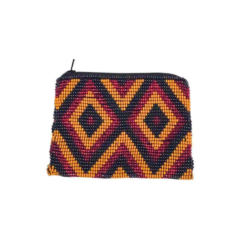 Exclusive Elegant Handwork Red & Yellow Black Beaded Huichol Embroidery Coin Purse With Stylish Unique Latest Top Look For Girl