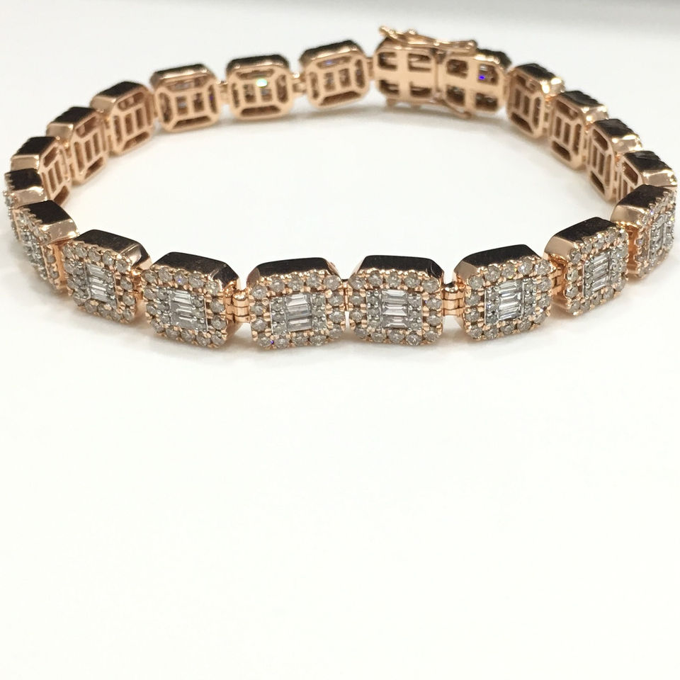 Exclusive Elegant Real Natural Diamond Studded Round and Baguette Tennis Bracelet in 10kt Rose Gold
