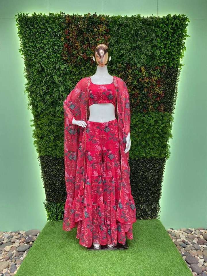 Exclusive Fancy Heavy Georgette Printed Choli With Full Flair Sharara and Ruffle Dupatta Premium Quality at Wholesale Price