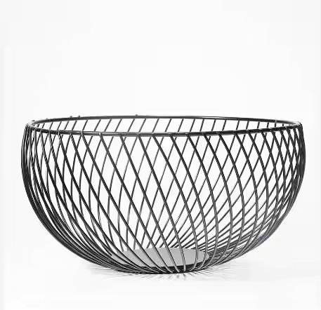 Exclusive Fruit Basket Black Metal With Base Stand Storage Basket for Table Top Kitchen Fruits Containing Usage