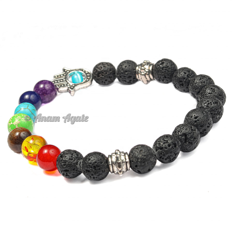 Exclusive Gemstone Red Jasper Stone Hamsa Evil-Eye Chakra Bracelets | Buy 7 Chakra Stone Bracelets for Sale