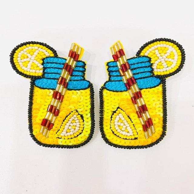 Exclusive Handcrafted Girls Night Beaded Customizable Dangle Earrings Rhinestone Crystal Drinks Sombrero Hat Fabric Material