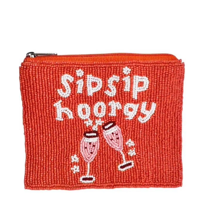 Exclusive Handmade Beaded Sip Sip Hooray Embroidery Coin Purse With Cute Designer Touch And Fancy Statement Style For Girl