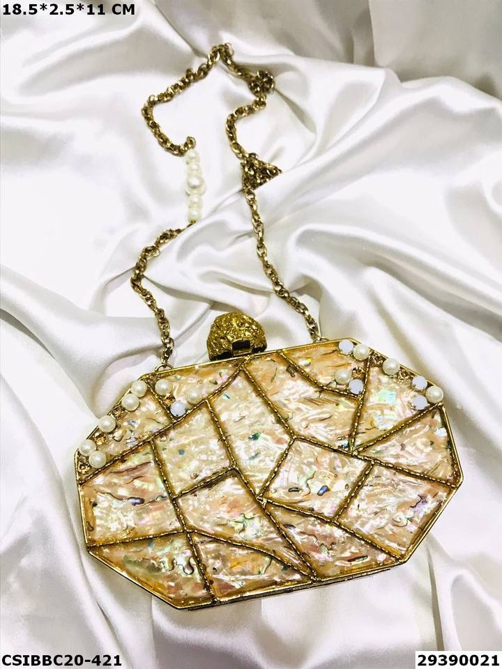 Exclusive Handmade Stylish Designer Bridal Brass Mother Pearl Clutches | Craftstages International Handcrafted Evening MOP Bag