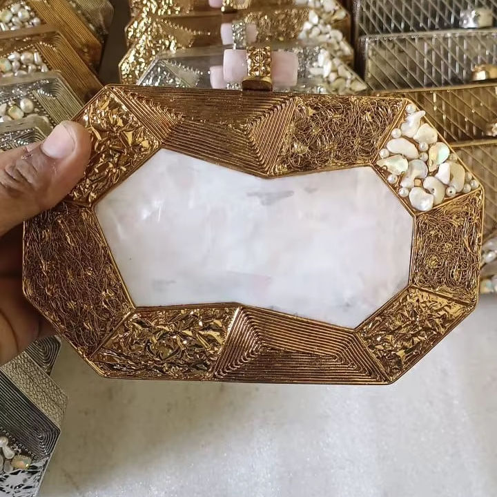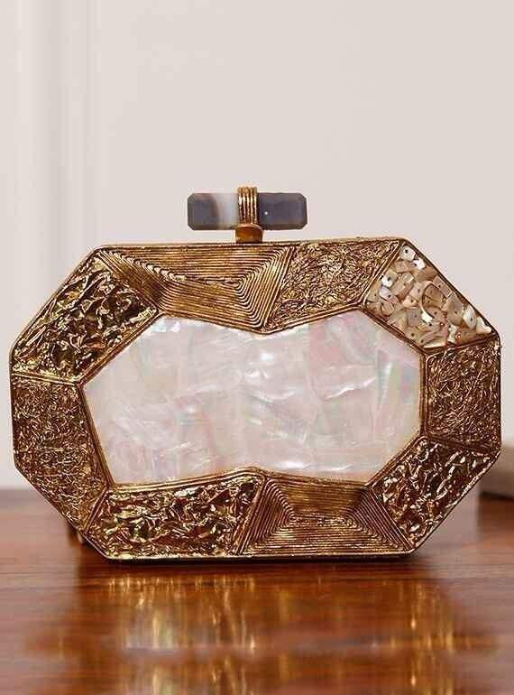Exclusive Handmade Stylish Designer Bridal Brass MOP Clutches | Craftstages International Magnetic Closure Synthetic Evening