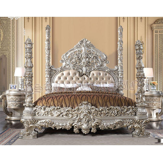 Exclusive Heavy Carved Silver Master Room Four Poster BedProduct name