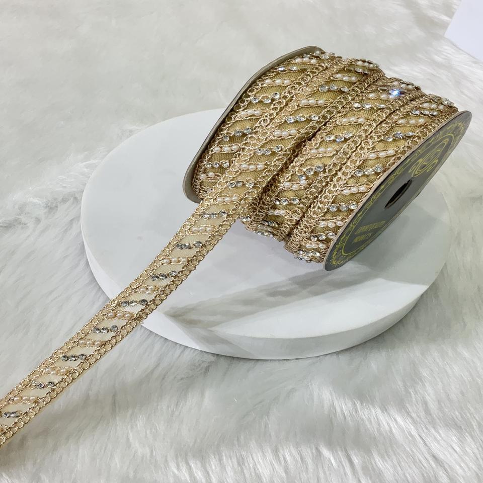 Exclusive Heavy Meat Beads Stones Thread Work Embroidery Elegant Wedding Border Lace Fabric for Dupattas Blouses Event Decor