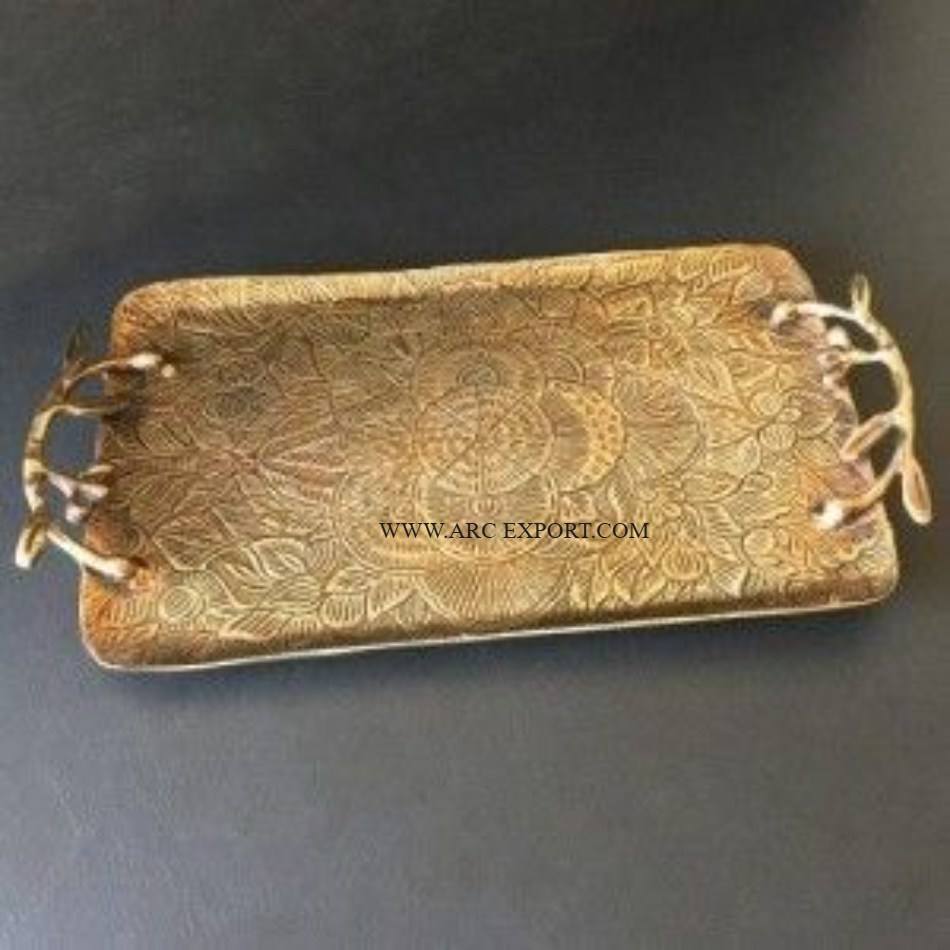 Exclusive Luxury Gold Brass Made Antique Metal Decorative Serving Tray Bowl Handmade Feature for Parties Serving Tray From India