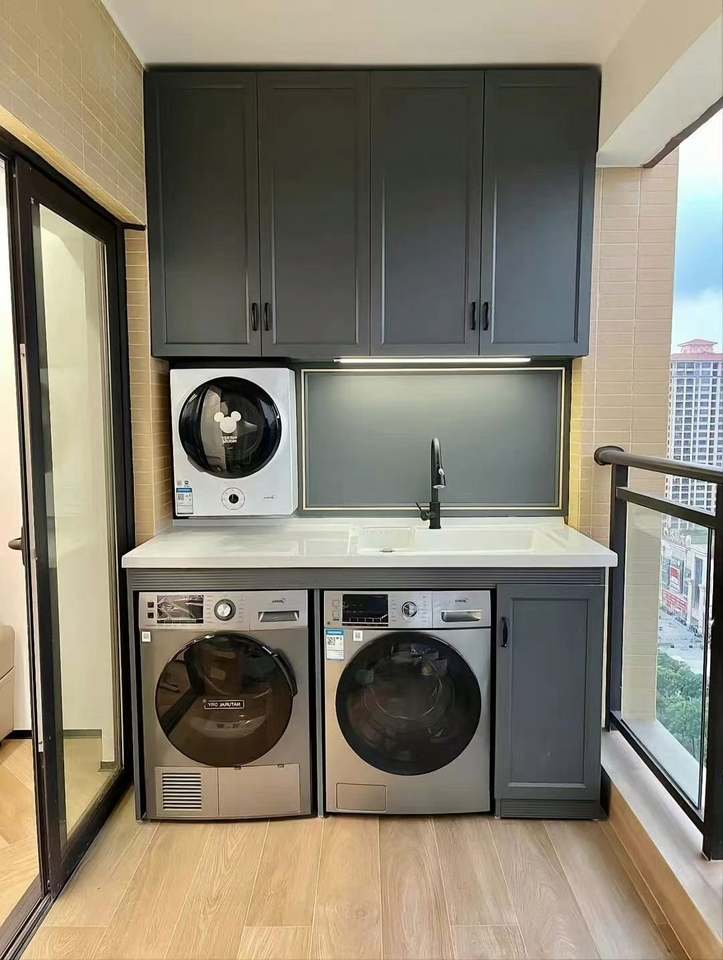 Exclusive Luxury Wooden Plank Industrial Custom Integral Laundry Cabinet Balcony Cabinet