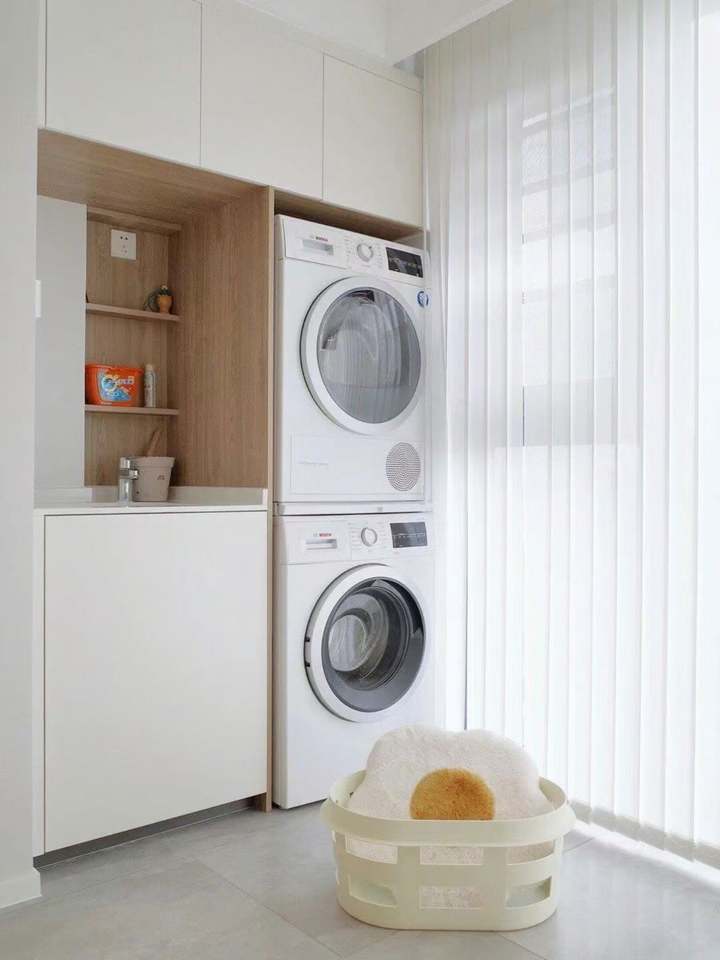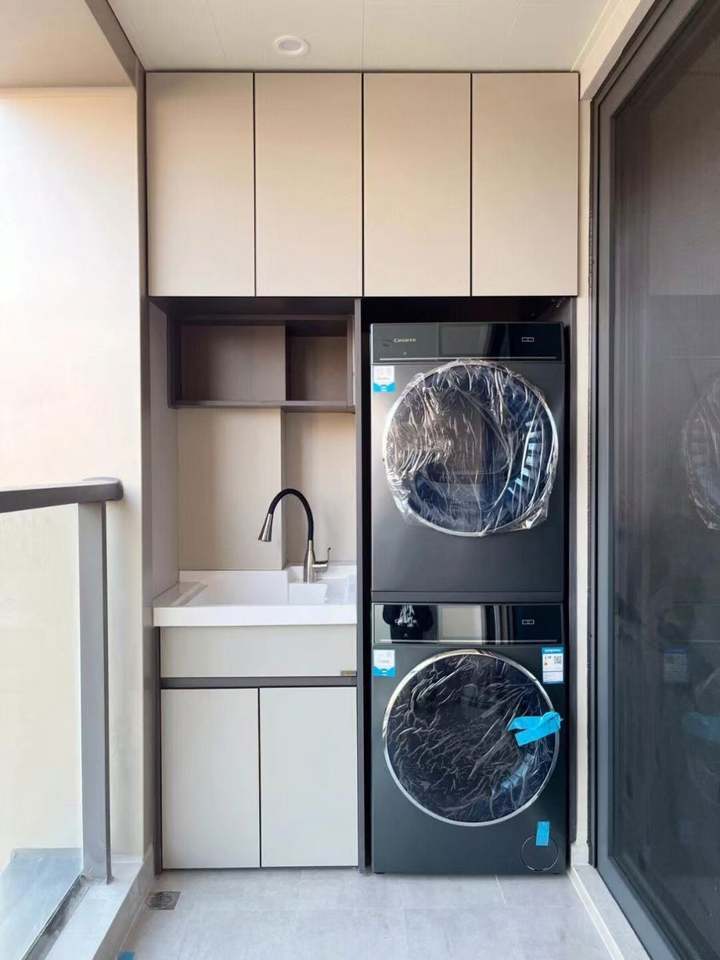 Exclusive Luxury Wooden Plank Industrial Custom Integral Laundry Cabinet Balcony Cabinet