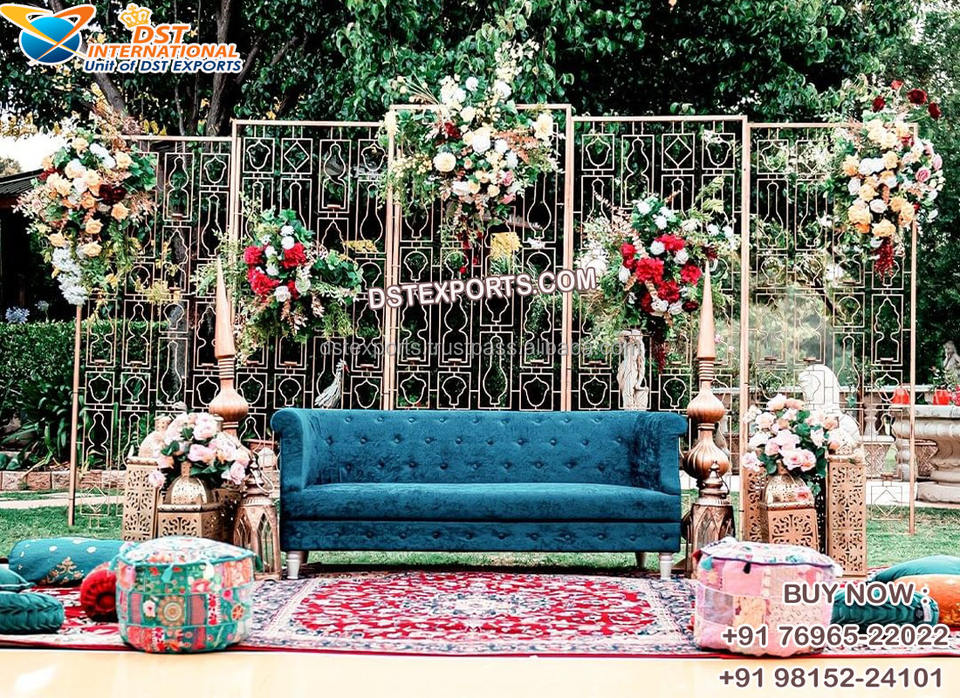 Exclusive Metal Arch Frames for Reception Stage Astonishing Wedding Reception Stage Metal Panels Gold Metal Backdrop Stand