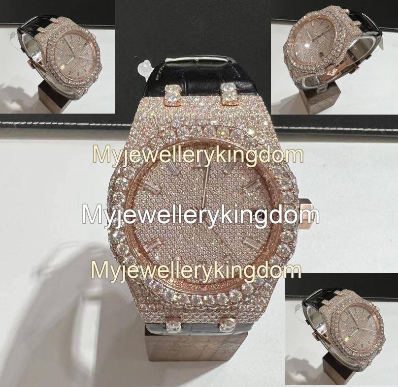 Exclusive Moissanite Watch for Men Iced Out With Round Brilliant Cut VVs Clarity Diamond Iced Out Hip Hop Watch for Men