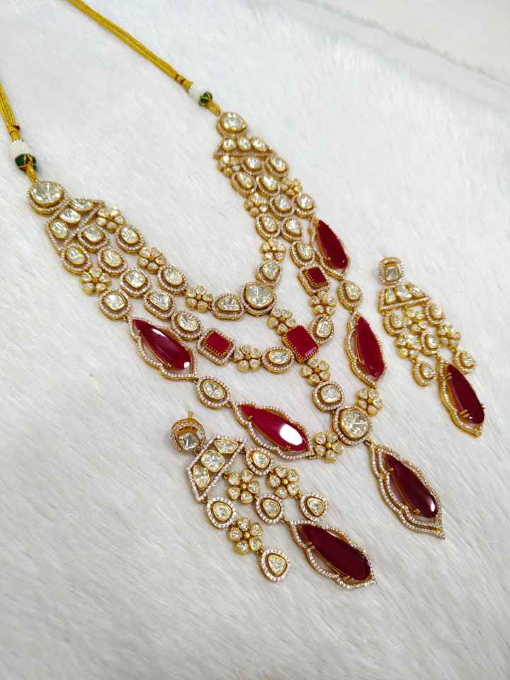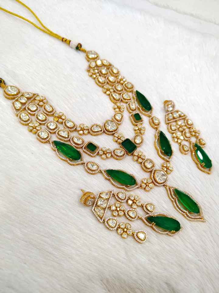 Exclusive Mosenite Necklace and Earrings Set Designer Antique Look Stone Studded with Pearls for Wedding and Party Outfits