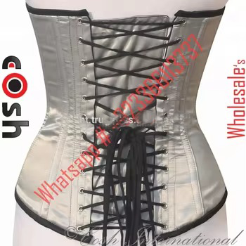 Exclusive New Design White Overbust Steel Boned Corset With Adjustable Front Laces and Busk Closer Also Black Trim