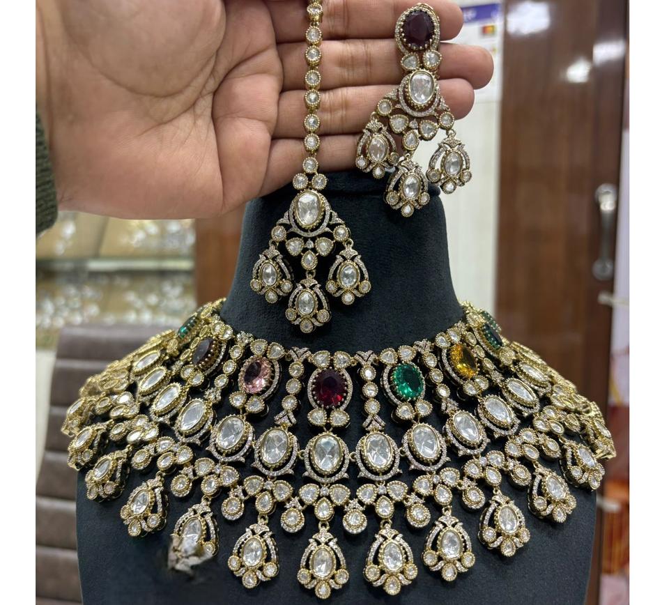 Exclusive Premium Quality Gold Plated Kundan Pearls Look Necklace Set With Earrings Tikka for Wedding Wear Collection For Women