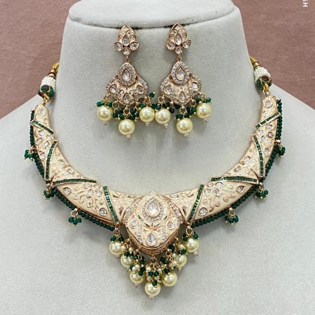 Exclusive Premium Quality Gold Plated Stones Look Necklace Set With Earrings For Wedding or Function Wear Collection For Women