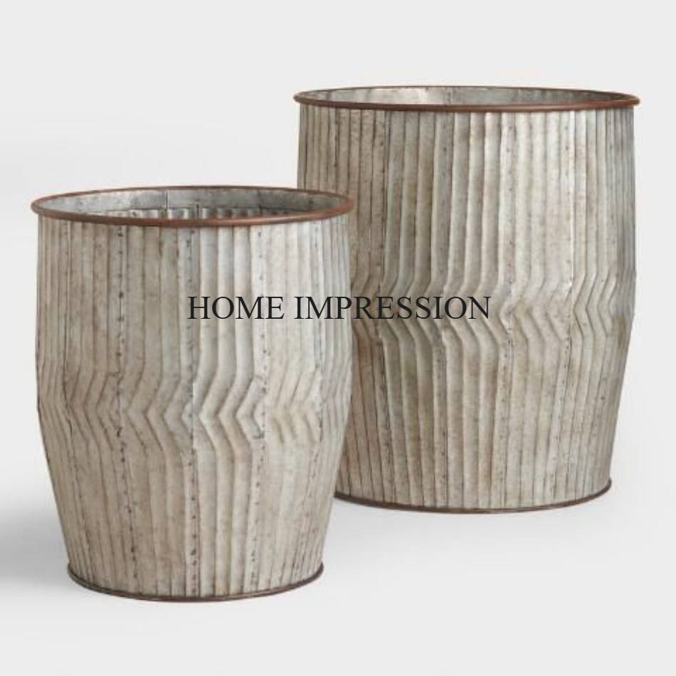 Exclusive Quality Large Galvanized Flower Planters and Pots Handcrafted Round Shape Indoor and Outdoor Flower Decorative Planter
