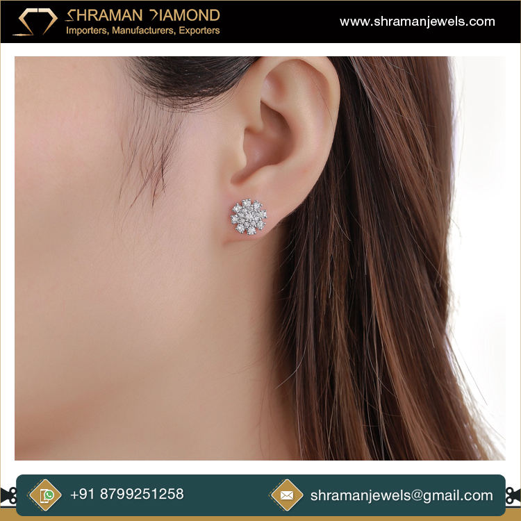 Wholesale Fine jewelry 925 Silver Custom Trendy Sparkling Cluster Flower Lab Grown Diamond Rhodium Plated Stud Earring Men Women
