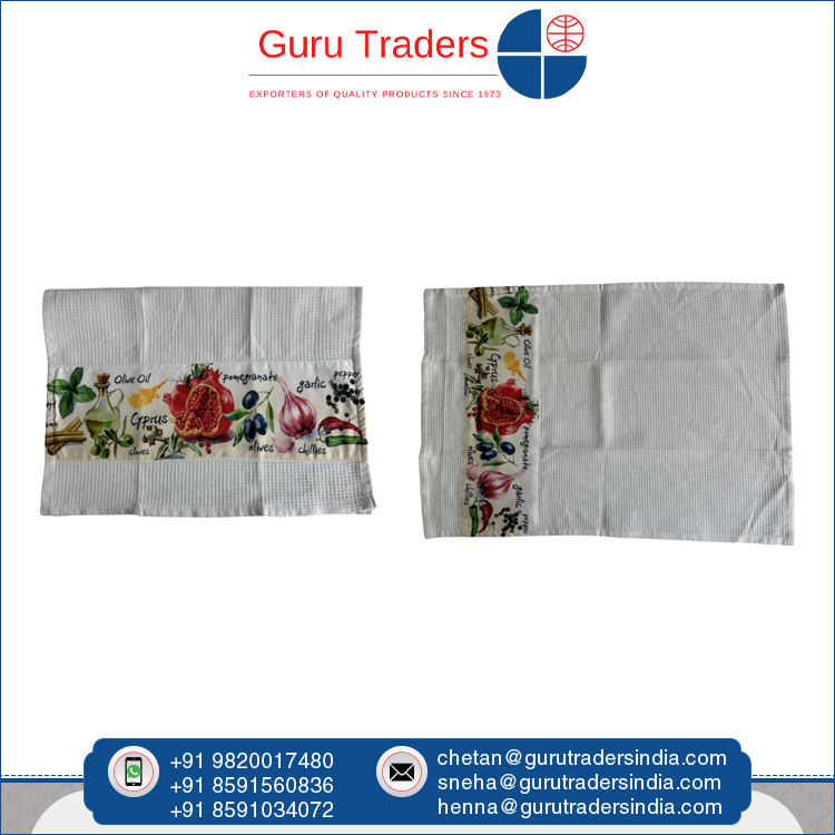 Exclusive Sale of Waffle Weave Kitchen Towel with Digital Print Border with Cotton and Polyester Material for Bulk Buyers