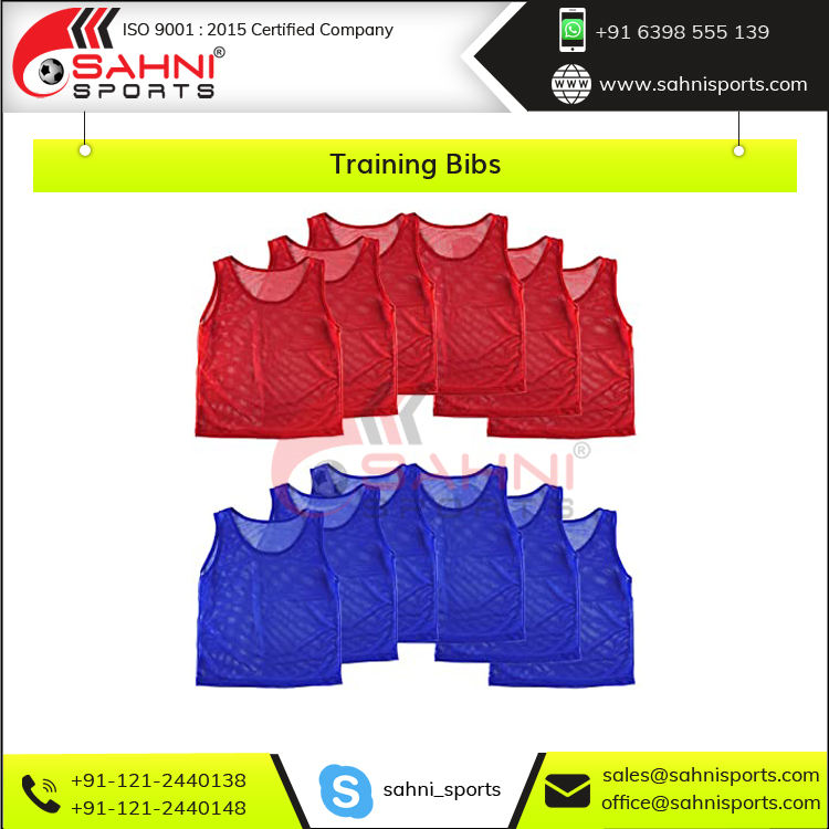 All Training Bibs come packed in poly bags individual or in Set of 5, 6 or 10 or 12 as per customer need and further into master box. Logo Customization or Size Tags is also available. Printed Retail Header Cards packing facility is also available.