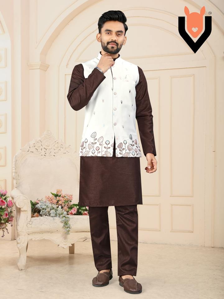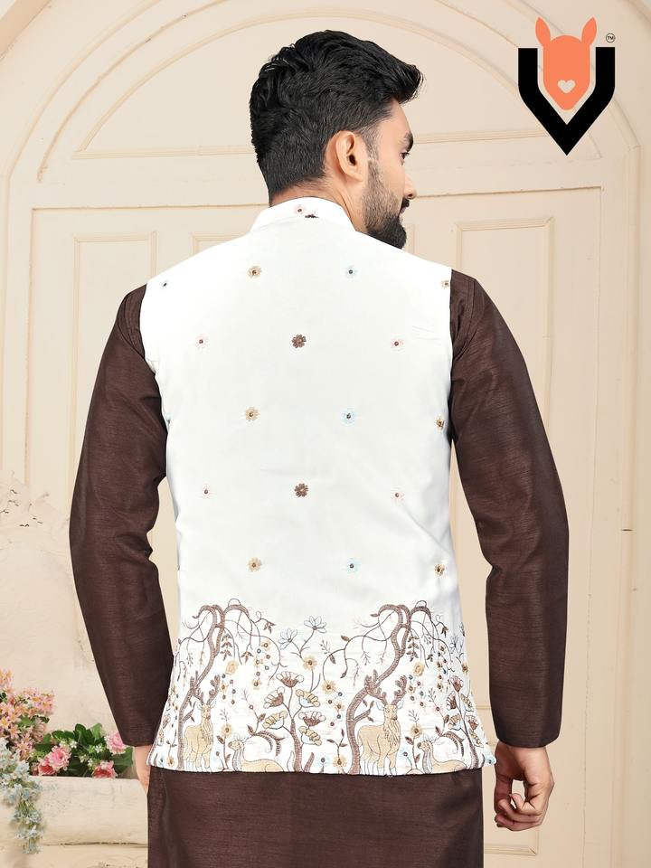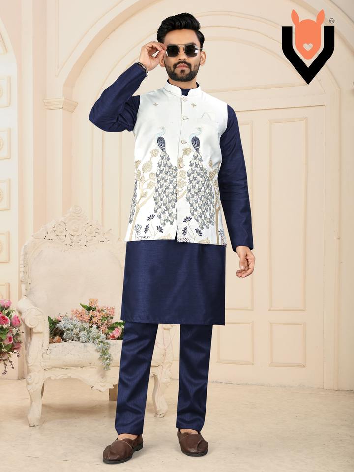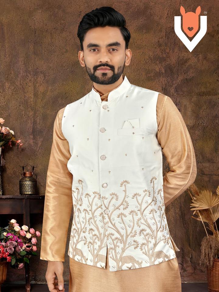 Product Name:Festival Wear Malai Satin With Embroidery And Sequence Work Men Kurta