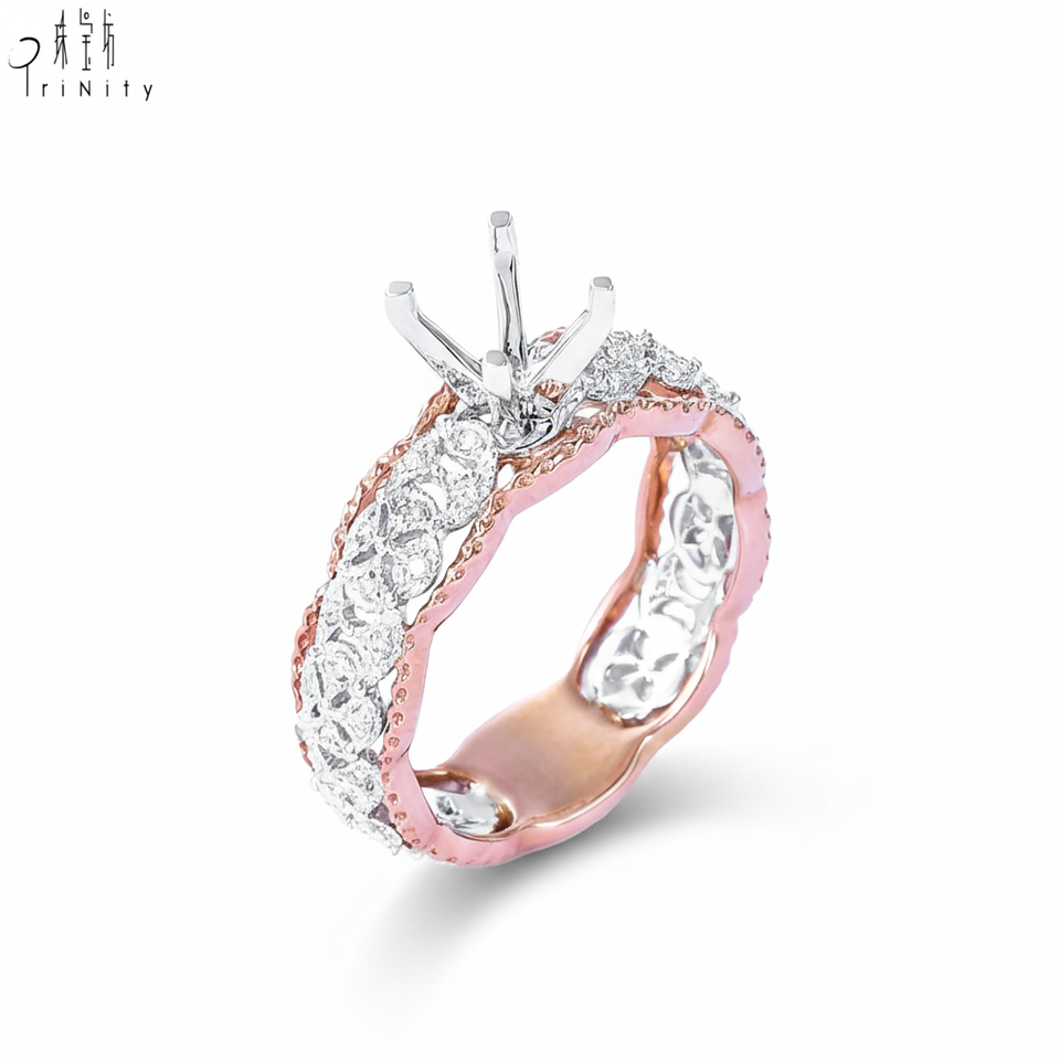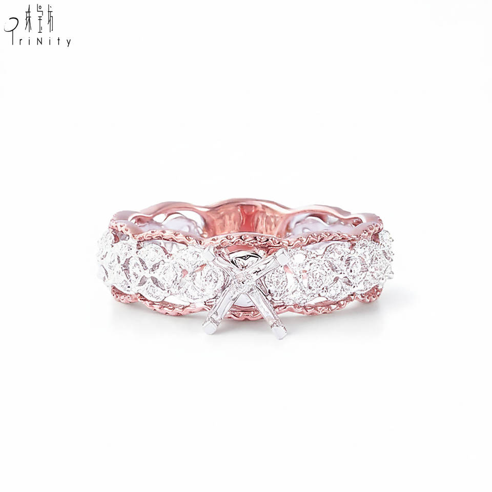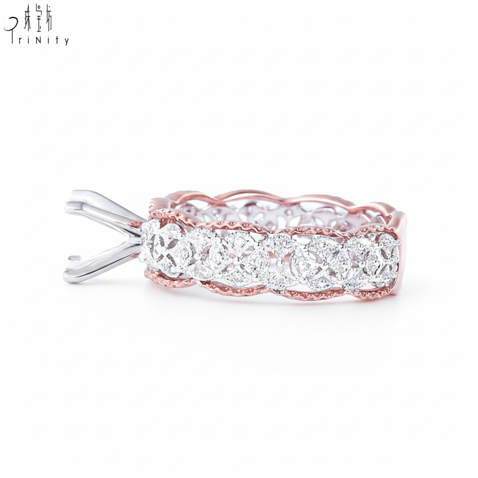 Exclusive Two Color Hollow Out Design 18K Solid Gold Real Natural Diamond Semi Mount Setting Engagement Ring For Women's Wedding