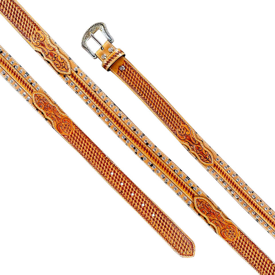 Exclusive Unisex Classic Vintage Western Hand Tooling Formal Leather Belt Dual Leather Strip Studs Imported Genuine Cow Leather