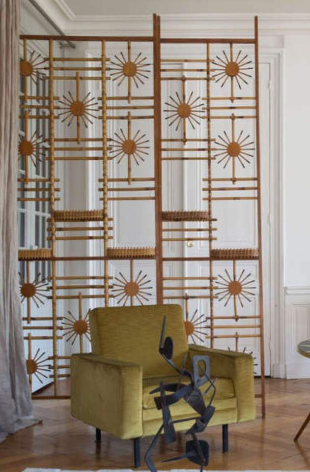 Exclusive wooden wall partition with attractive artwork and sturdy panels for use as a room divider in modern homes
