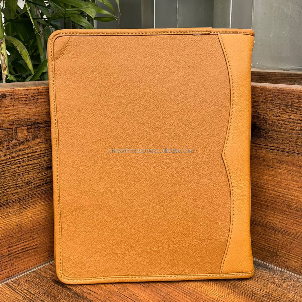 Executive Business High Quality Hand Tooled Leather Conference Folder Document A4 Organizer Cowhide Leather Three Ring Binders