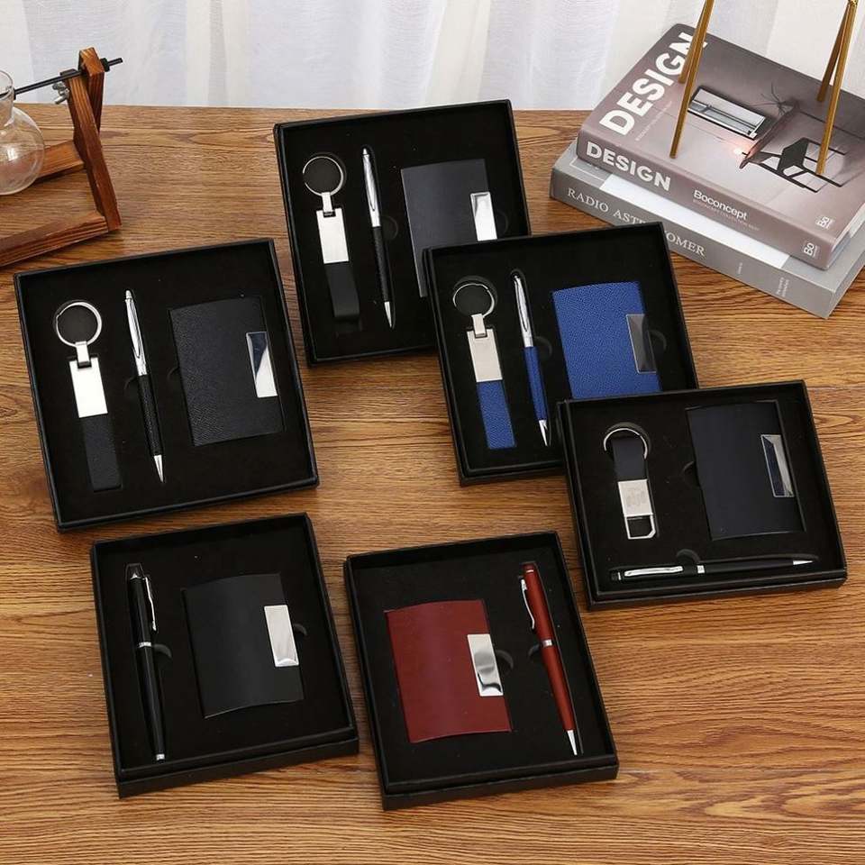 Executive Gift Set: Custom Keychains, Business Card Holder & Pen - Perfect Corporate Giveaway