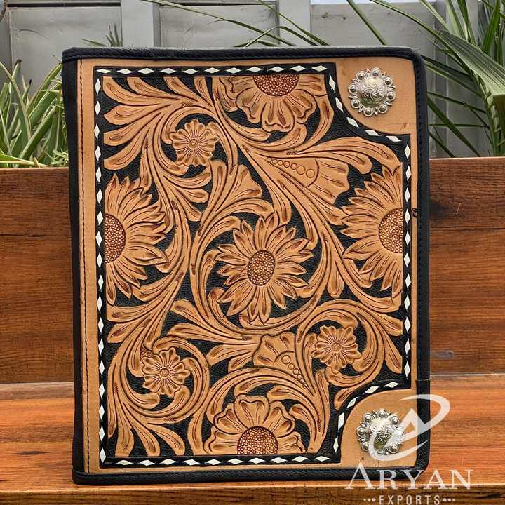 Product Name:Genuine Hand Tooled Leather Business Portfolio File Folder