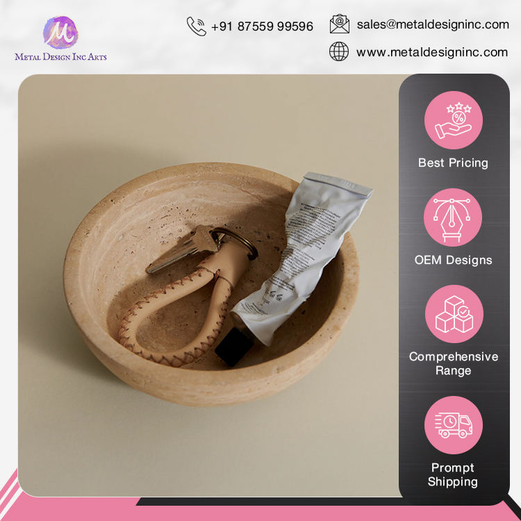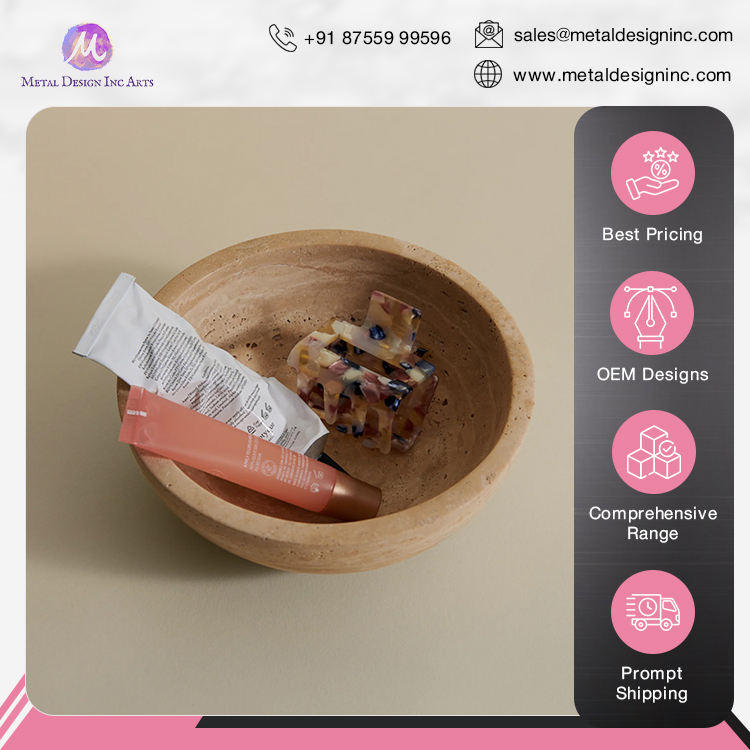 Exhibiting Highest Standard Quality Round Handmade Decorative Travertine Marble Stone Bowl for Home Decor from Indian Seller