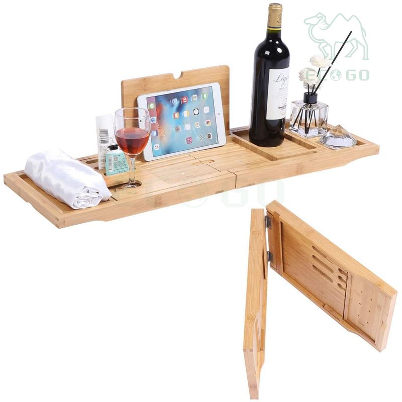 Expandable Bamboo Bathtub Caddy Tray Luxury Bathtub Tray With Book Holder Customized Adjustable Edge Bath Organizer Tray