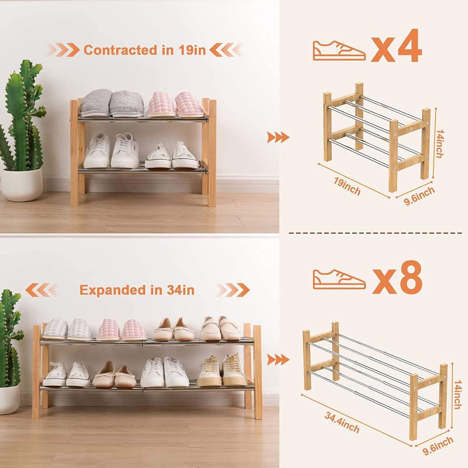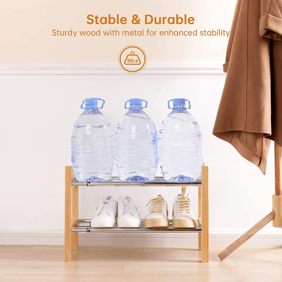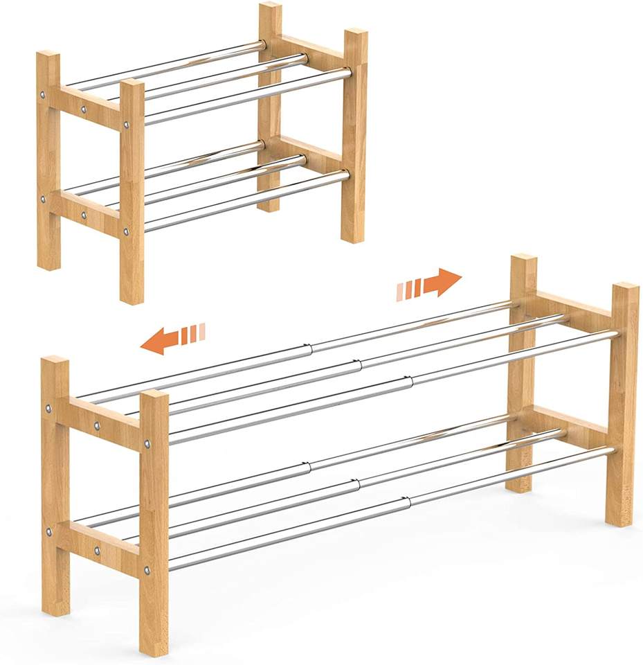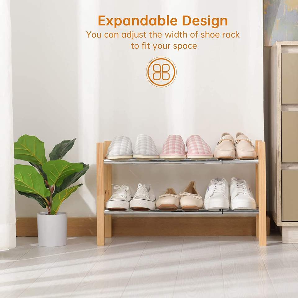 Expandable Shoe Rack Storage Organizer 2 Tier Adjustable Wood and Metal Shoe Shelf Heavy Duty Free Standing Shoe Rack