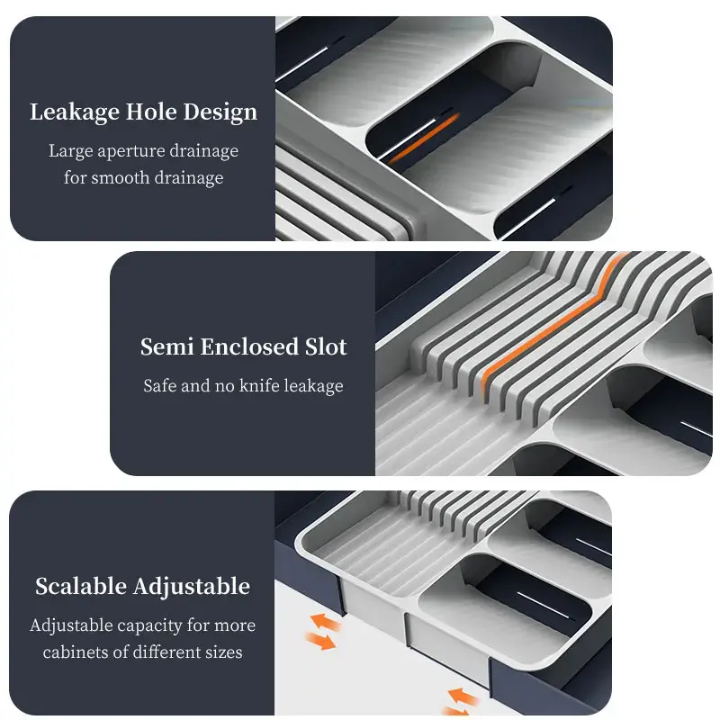 Expandable Silverware Organizer Kitchen Utensil Knife Cutlery Plastic Drawer Organizer in Drawer for Drawer with Knife Holder