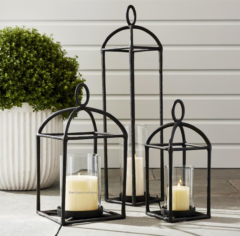 Expensive Black Finished Fallon Forged Iron Outdoor Lantern Handmade Hanging Candle Lanterns Available in Low Prices