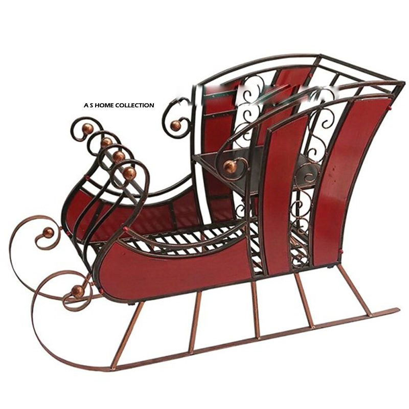 Expensive Design Luxury Style Christmas Sleigh Greatest Quality Farmhouse Decoration Gold & Red Color Box Santa Clause Bulk Sale