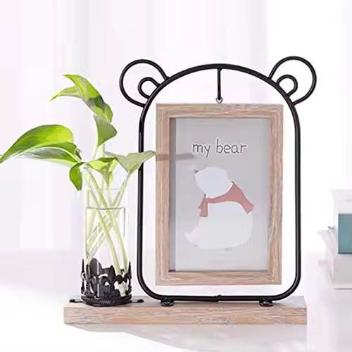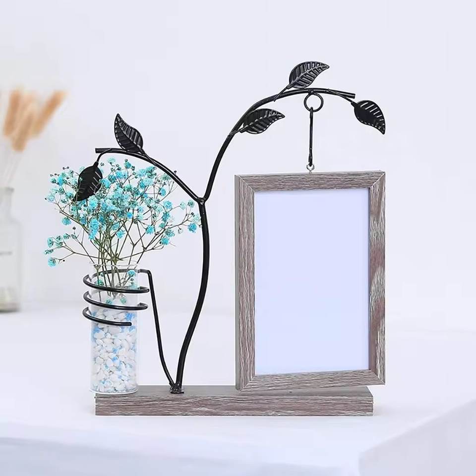 Expensive Design Square Wooden Photo Frame With Metal Stand Industrial Quality Metal Tabletop Decor Photo Frame