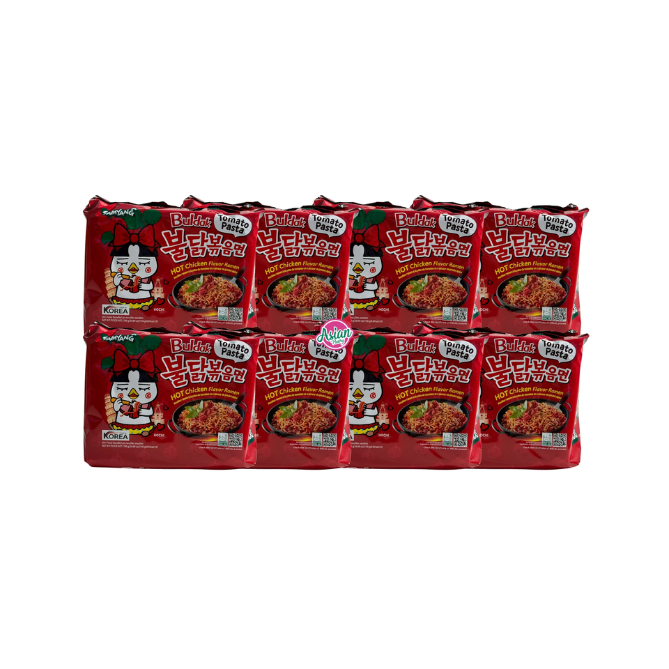 Experience Hot Chicken Flavor Ramen Tomato Pasta A bold fusion of fiery chicken spice with tangy tomato pasta flavor in every
