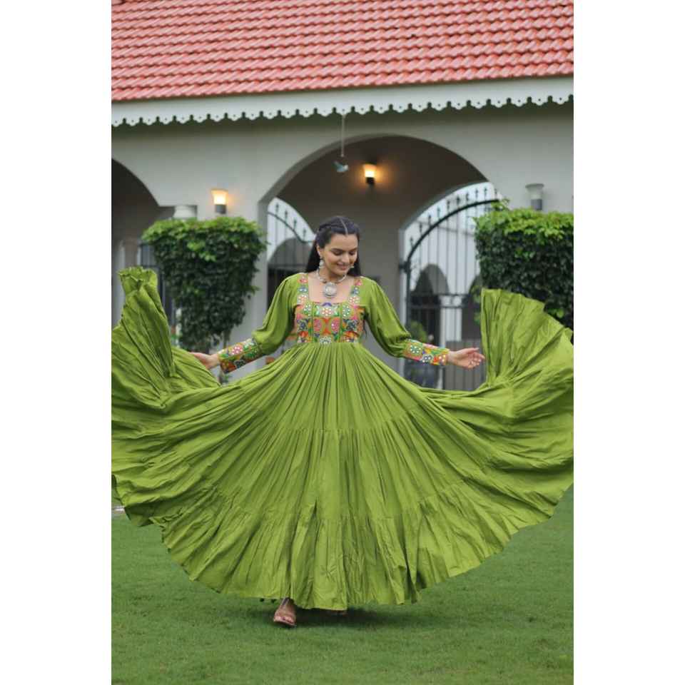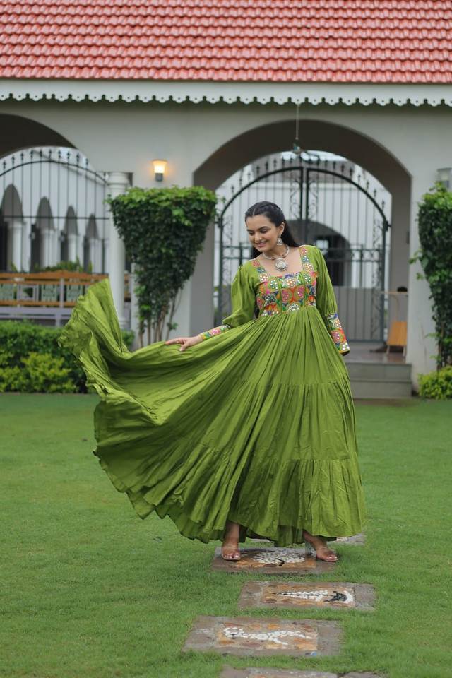 Experience the allure of Trending Gown With Gold Crush Fabric With Sequins & Multi Embroidered work Dupatta