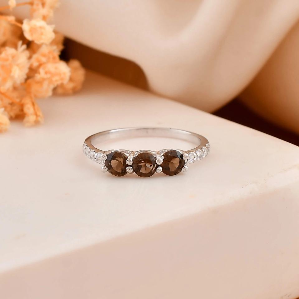 Expertly Crafted Smoky Silver Ring with Captivating Smoky Quartz Gemstone Finely Designed for Weddings Licensed Private Brand