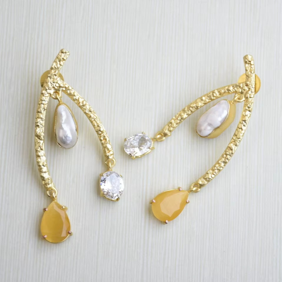 Export Brass Fashion Earrings Bulk Handcrafted Semi Precious Matte Brass Texture Trendy Statement Piece Perfect Wholesale